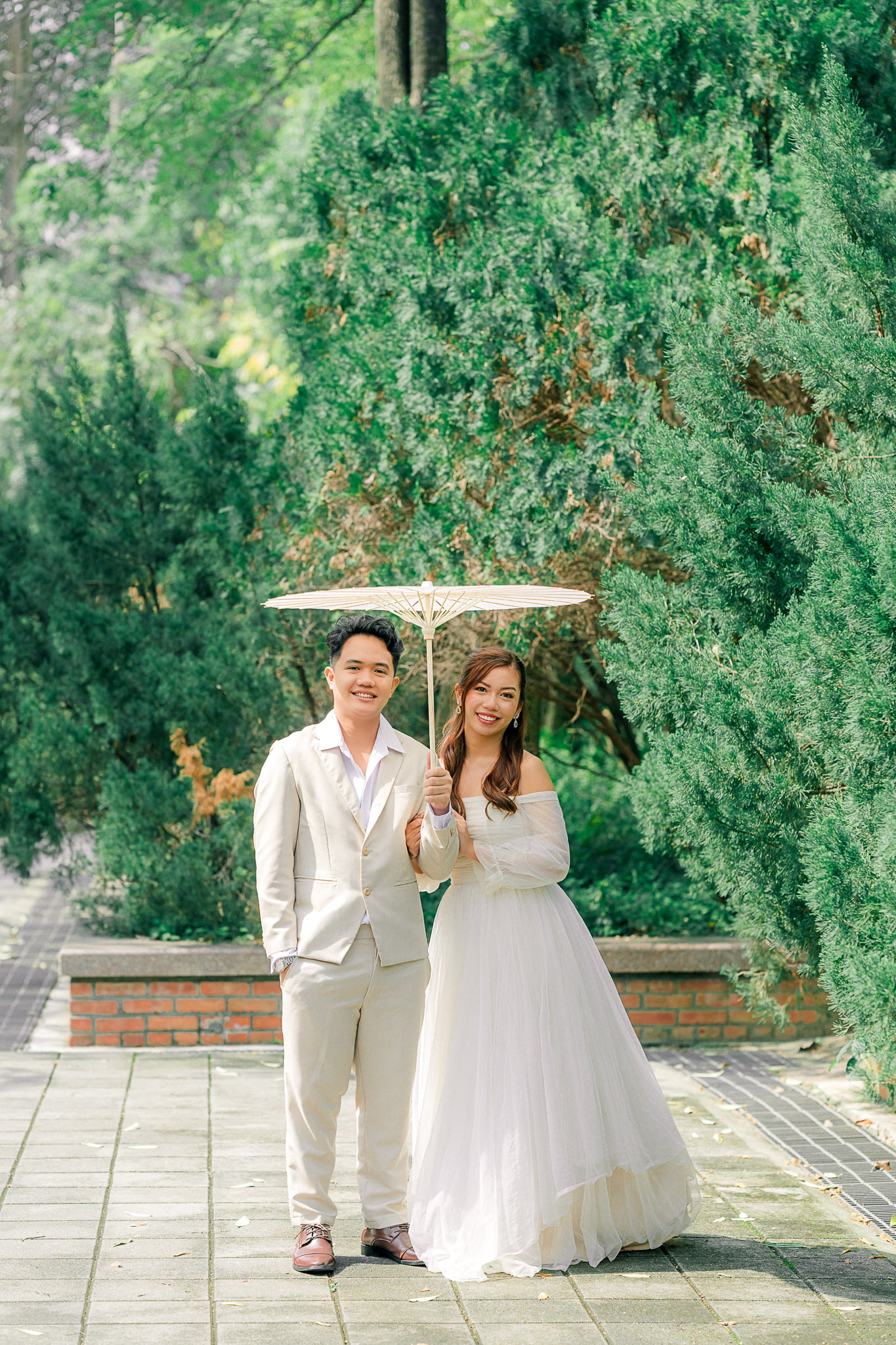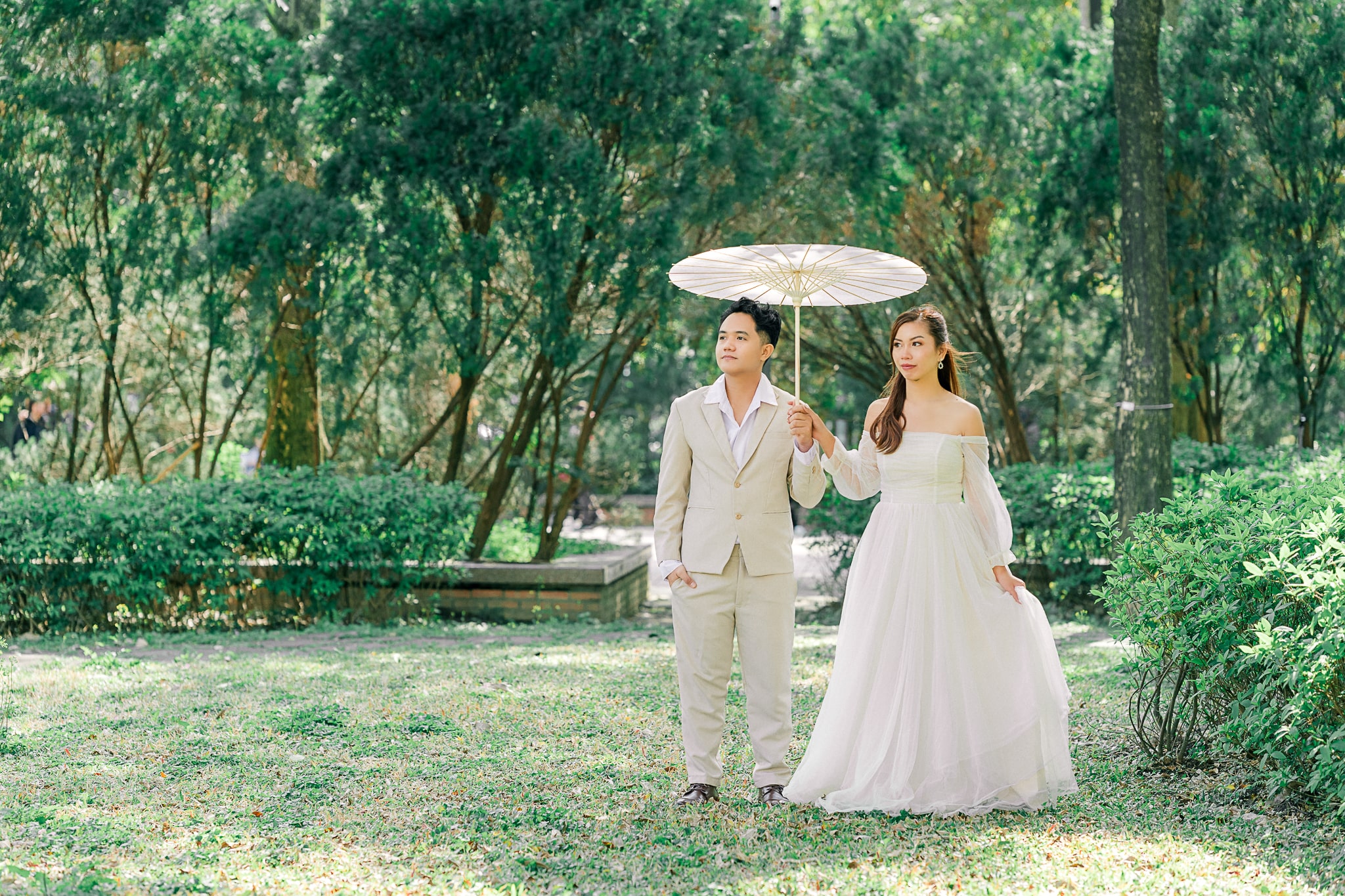 Nestled in the heart of Taipei, Daan Park is often called the 'lungs of the city.' A peaceful escape filled with greenery and quiet corners, it’s a place where love feels timeless and serene. Among its trees and pathways, we found the perfect setting to capture the calm yet enduring beauty of our story.